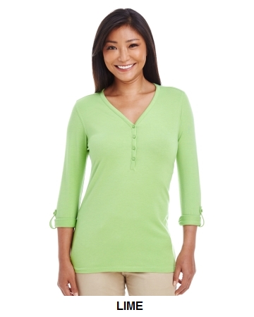 Devon & Jones Ladies' Perfect Fit™ Y-Placket Convertible Sleeve Knit Top", (DP186W)