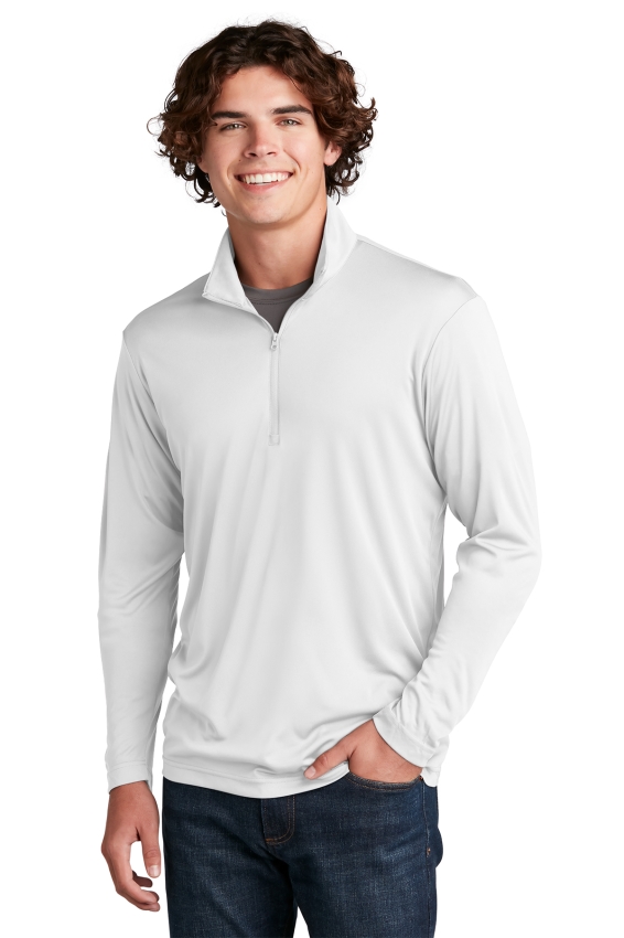 SPORT-TEK ST357. This lightweight pullover locks in color and wicks moisture. Its versatile enough for year-round wear.3.8-ounce, 100% polyester interlock with PosiCharge technology. Removable tag for comfort and relabeling. Cadet collar. Reverse coil zipper. Set-in sleeves. Open cuffs and hem.
