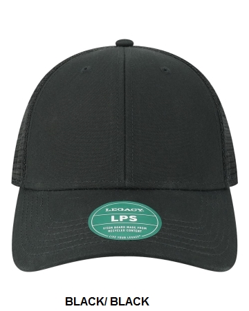 LEGACY LPS. Item #: 93895 65/35 cotton/polyester. Heather Grey is 10/55/35 wool/acrylic/polyester. Mesh back. Structured, six-panel, low-profile. Pre-curved visor, visor board transitioning to recycled content. Snapback closure.