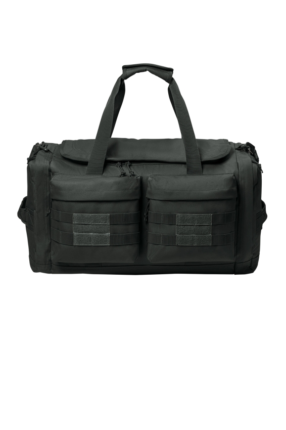CORNER CSB815 As versatile as it is functional. This rugged duffel is fit for the job. gym or travel. Loop panels stand at the ready to display patches and badges. 600D polyester canvas. Large covered D-shaped zippered main compartment. Interior storage pockets. End zippered shoe compartment with ventilation. End zippered pocket. End web grab handles. Web carry handles with padded handle wrap. Adjustable. removable. padded shoulder strap. Two front zippered pockets with daisy chains and loop panels for badges and patches. Dimensions: 12h x 22l x 10d.