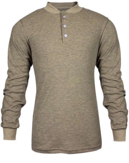 Tecgen Select Long Sleeve FR Henley. The no melt, no drip, or ignite FR Clothing of the future. Moisture Wicking with an Unsurpassed Breathability & Drying Rate. Tagless shirt collar and exterior labeling. Arc Rating= 13 cal/cm²; HRC 2. UL Certified to NFPA 2112 & NFPA 70E Compliant