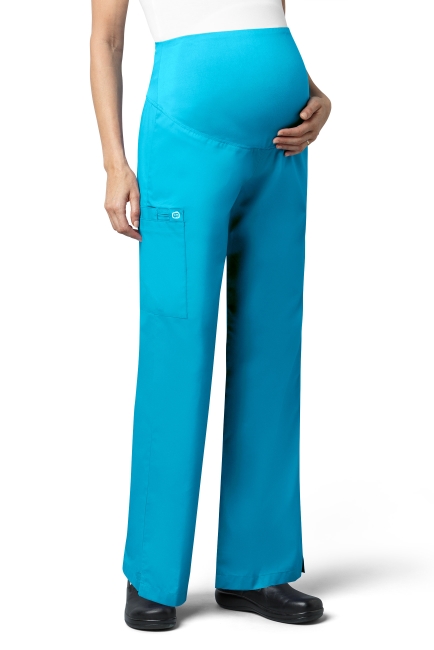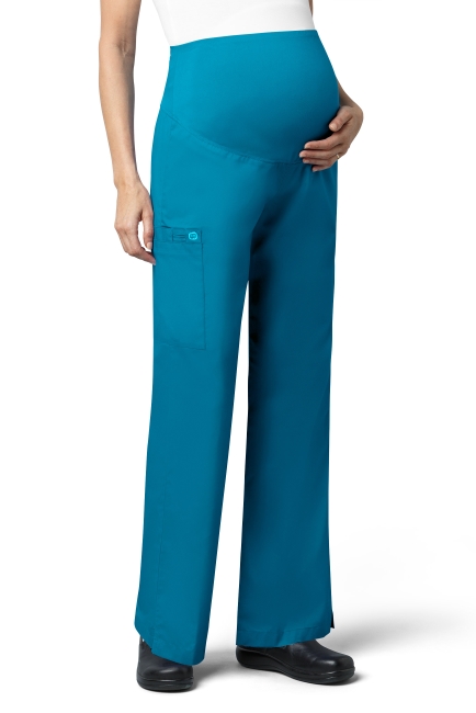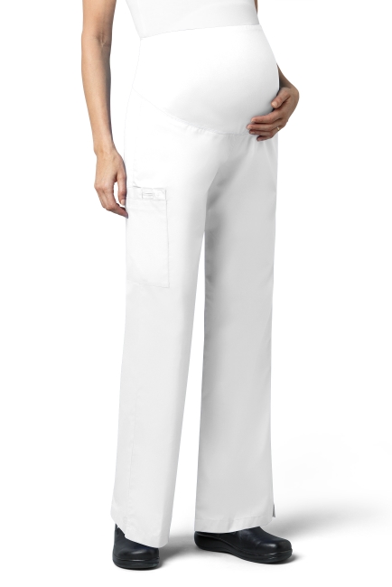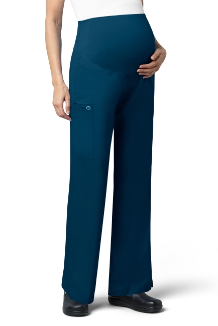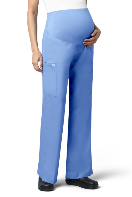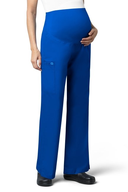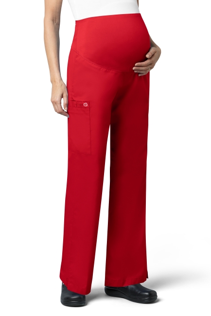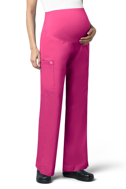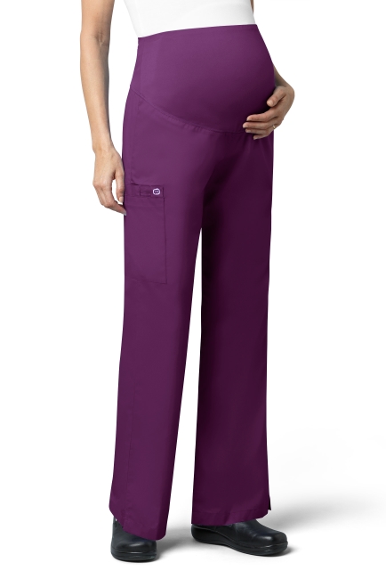 WONDER WINK WW545 Women's Maternity fit. WAIST Dyed-to-match silky knit waist panel. POCKET: One large cargo pocket, one pen pocket and one cell pocket. FEATURES: Flare leg styling, utility loop, vented bottom hem.
