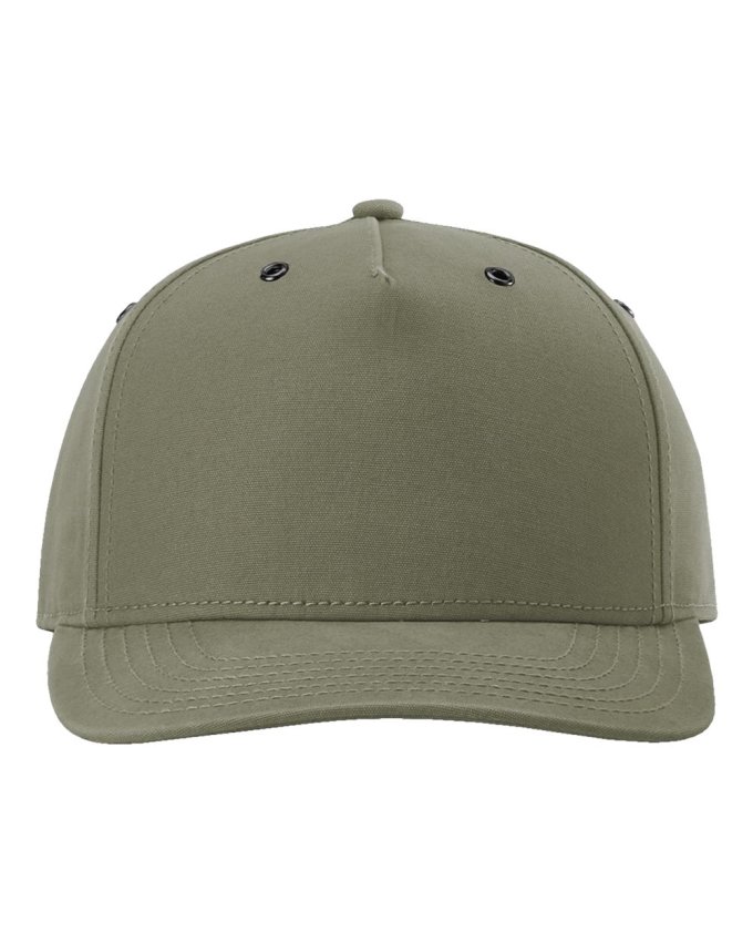 RICH. CAP 336. Item #: 37495 100% cotton, brushed canvas. Structured, five-panel, mid pro profile. Pre-curved bill. Snapback closure.
