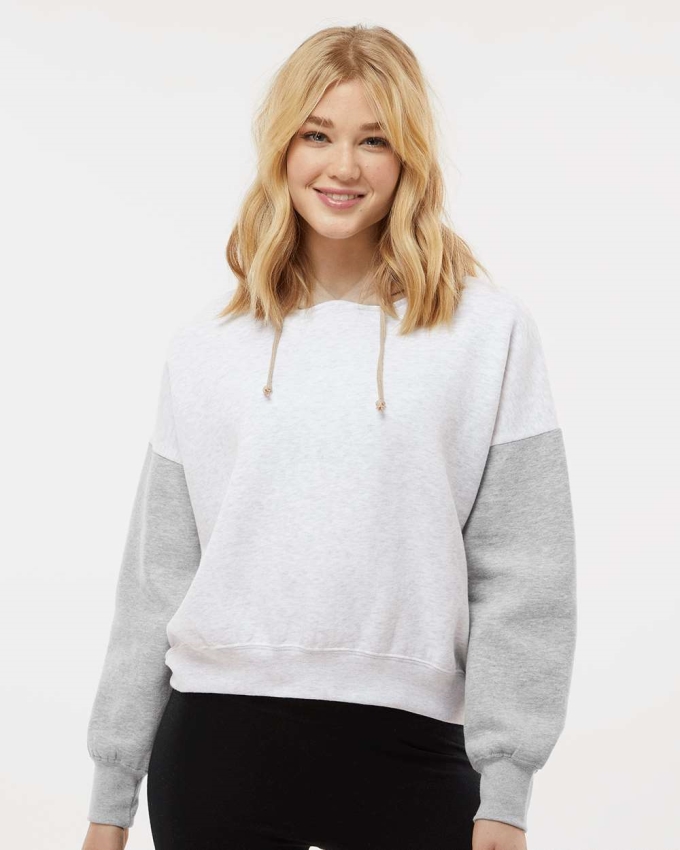 MV Sport Women's Sueded Fleece Colorblocked Crop Hooded Sweatshirt. MVSPORTS W23716