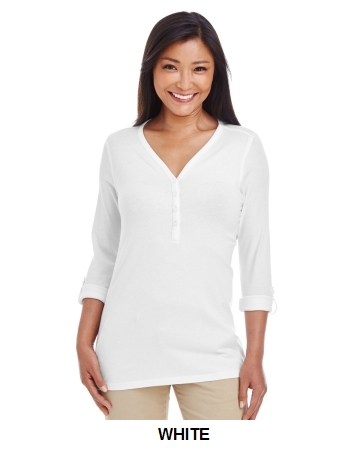 Devon & Jones Ladies' Perfect Fit™ Y-Placket Convertible Sleeve Knit Top", (DP186W)